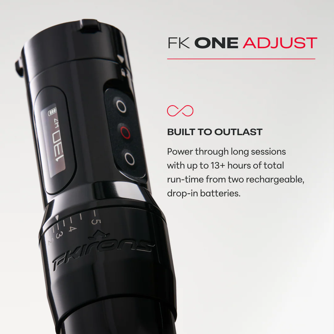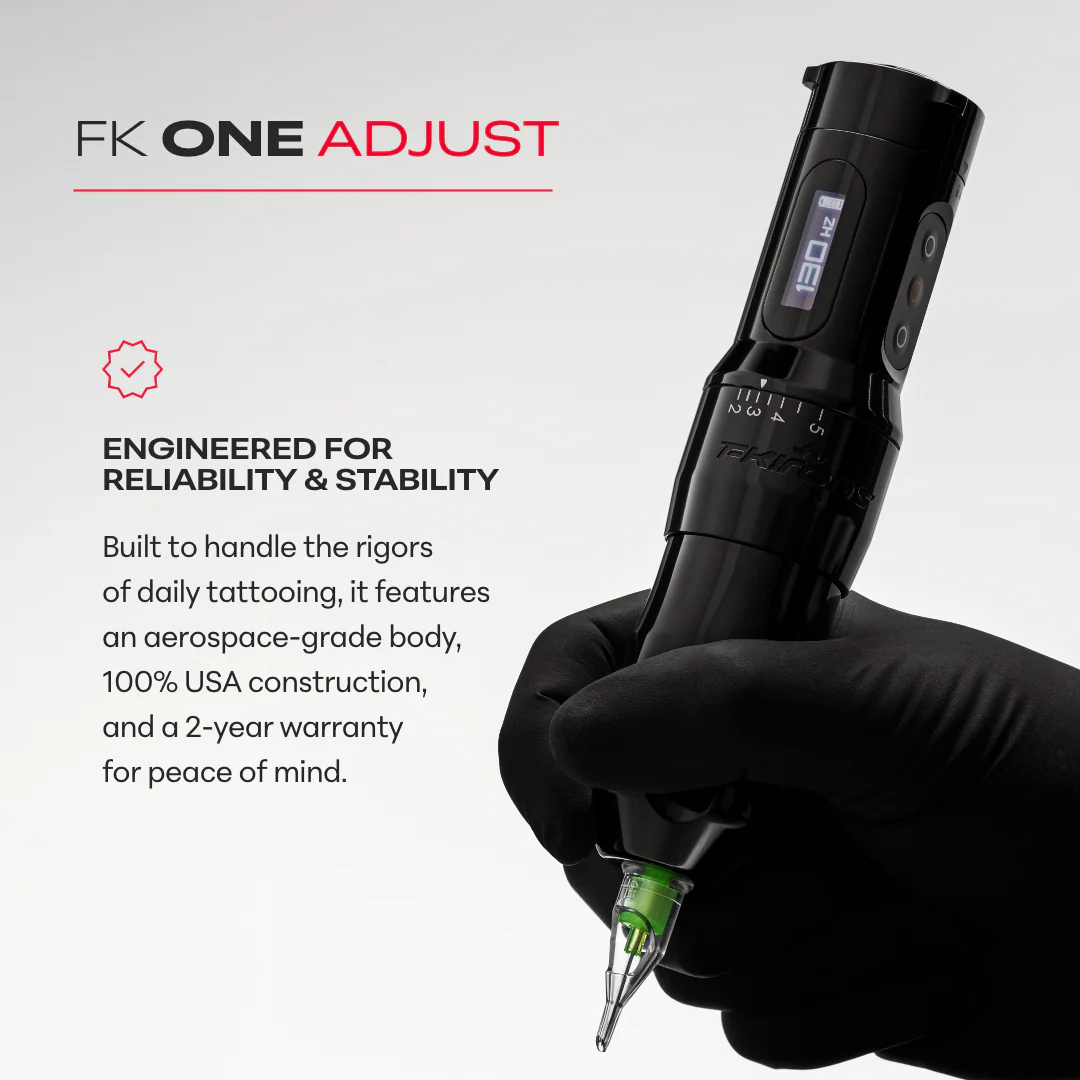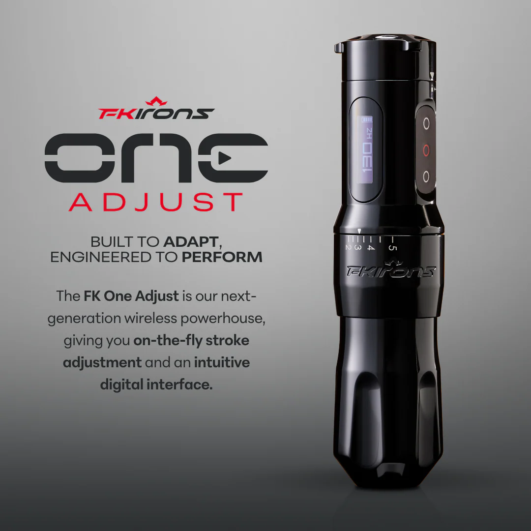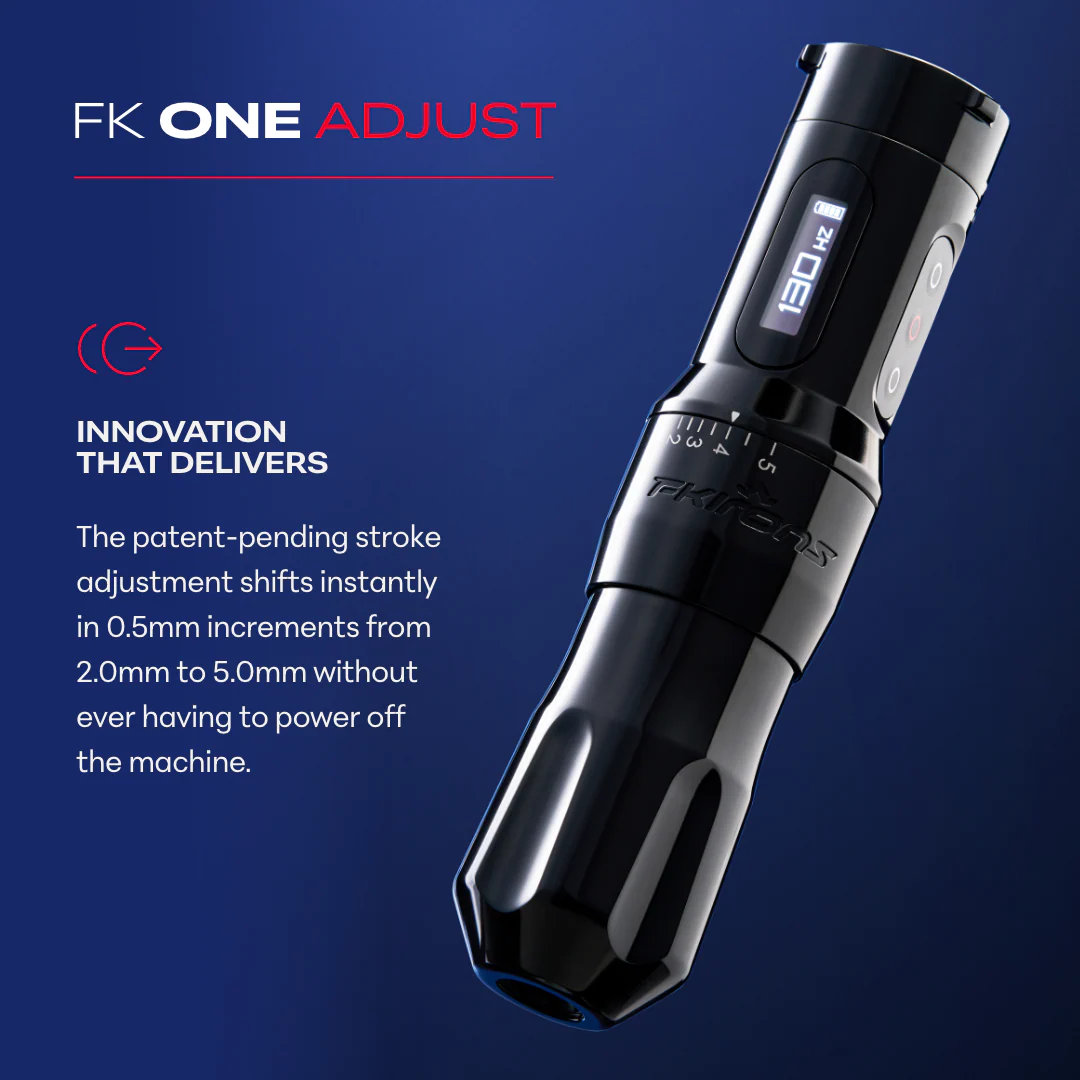 Enjoy versatility with no limitations when you tattoo with the FK One Adjust. The FK One Adjust is built to adapt to any style, so you can pursue any project for any client. This patent-pending stroke adjustment technology delivers effortless adaptability, so you can tackle any technique on the fly. Easily adjust your stroke mid-session without ever having to power off your machine. One setup handles everything: no need for swapping machines or cams mid-session.