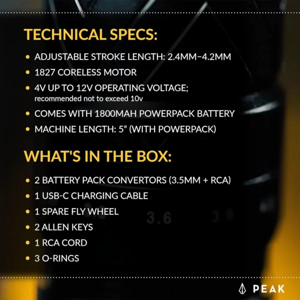 Elevate your tattooing experience with the Peak Solice Pro, the first wireless machine from Peak to offer a fully adjustable stroke. Effortlessly fine-tune your stroke from 2.4mm to 4.2mm with the simple turn of the stroke adjustment knob — perfect for artists who want one machine to handle lining, shading, and color packing.